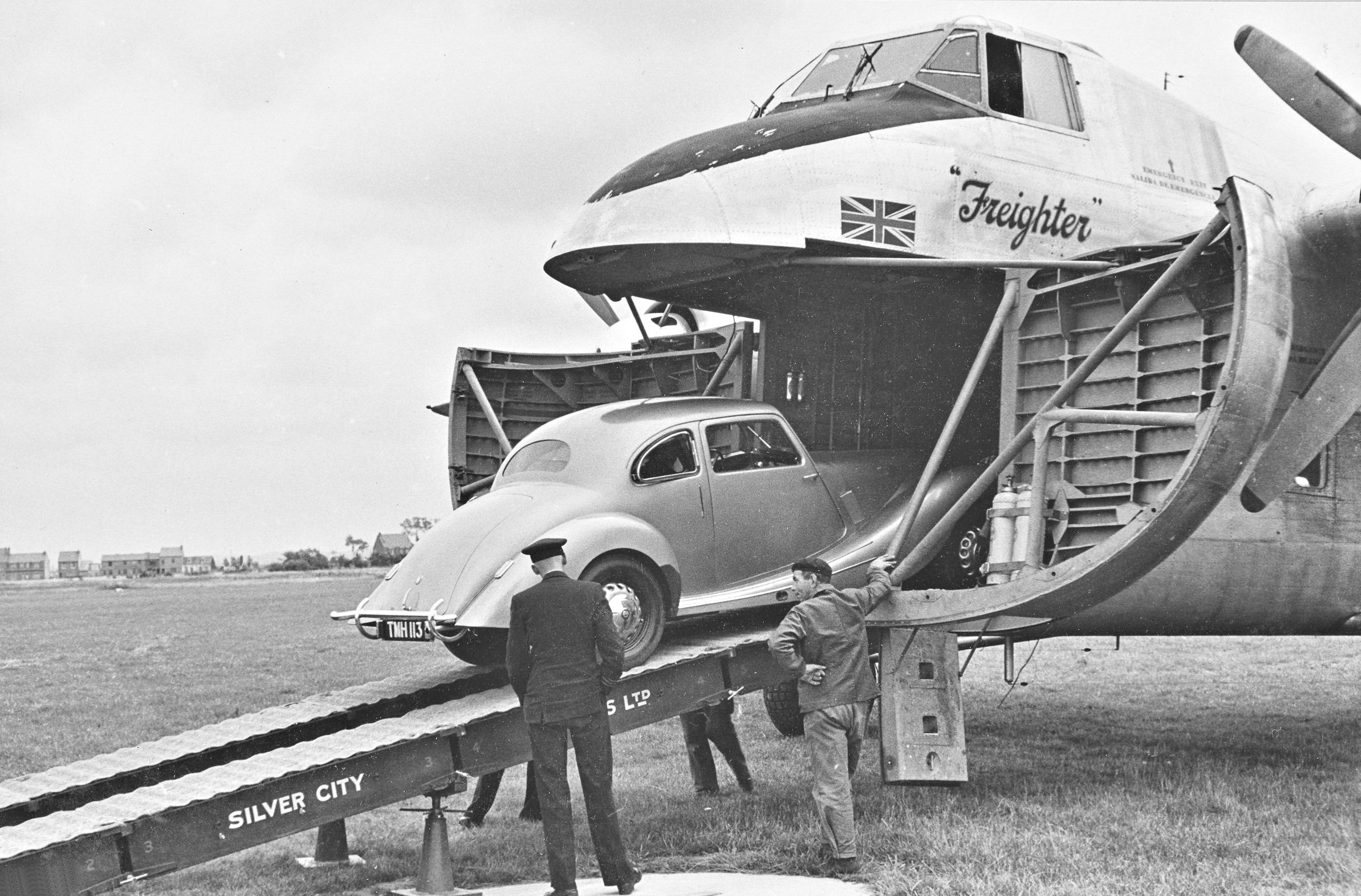 The Type170 Bristol Freighter was a post-war work horse. Designed at the end of the war but produced in the Brabazon era, it was built in two configurations , firstly with a passenger carrying capacity of 32 , (exceeded in very special circumstances) and secondly with its bluff nose hinged to open like a clamshell, thus permitting motor vehicles (3 cars and 20 passengers, or one 3 ton truck) to be driven up into its nose.