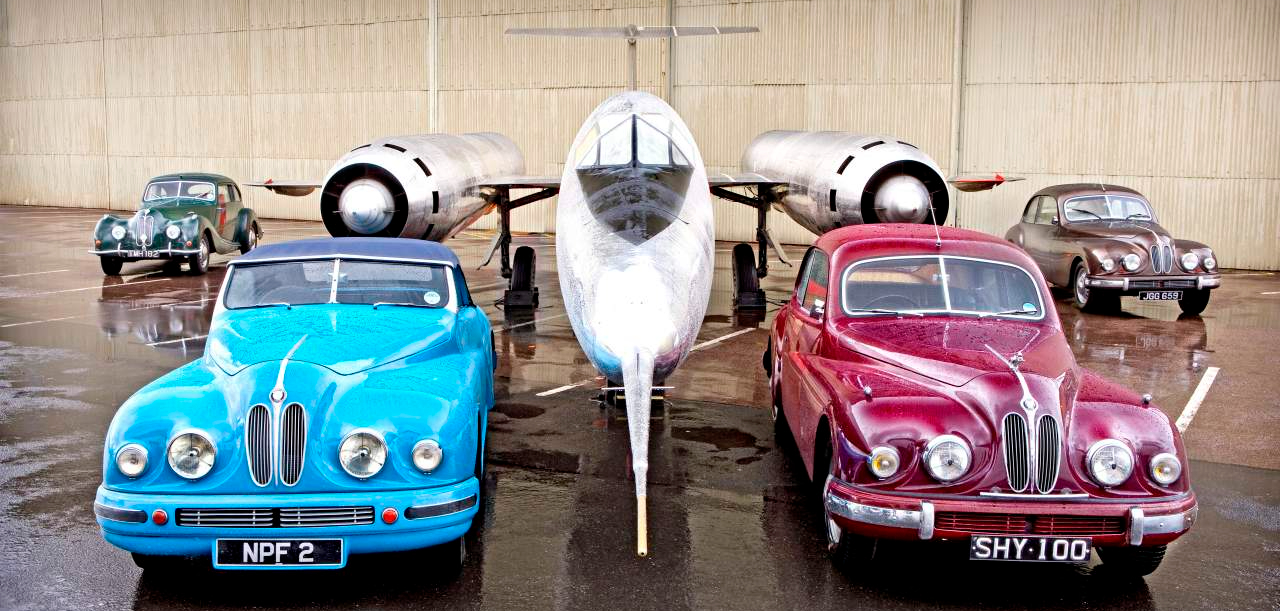 Bristol cars at RAF Cosford Museum with the Bristol T188 in the background