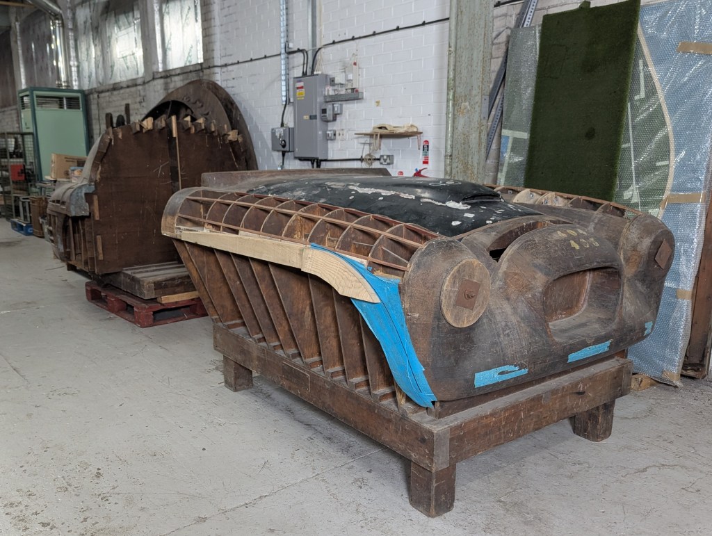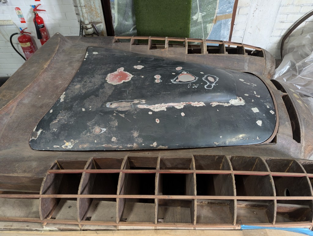 On the front buck, you’ll see an original 405 bonnet in its unrestored state, showing the different paint layers. It was kindly donated by Stefan Cembrowicz, chair of the Bristol Owners’ Heritage Trust. The bonnet came from a random 405, but (true to Bristol engineering) it fits perfectly onto the buck, slotting neatly into the bonnet aperture. No surprise, given the company’s roots in aircraft design and precision craftsmanship. I hope you enjoy seeing them ‘in the flesh’ – I think they look spectacular.