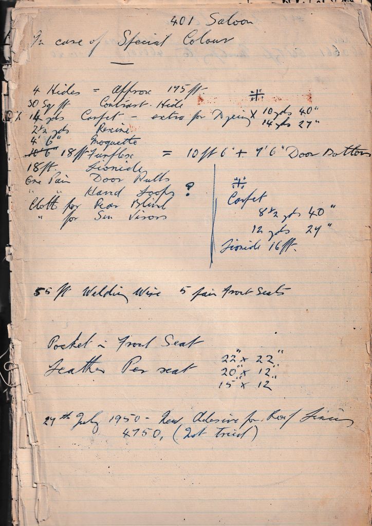 Each month the BOHT is going to release at least one article based on research of records found in the archive it acquired from the liquidators of Bristol Cars. The first of these is attached. It is about information in a ledger created and used by the Car Division trim shop in the early Fifties. Also attached are two images, one of a random page of the trimming book and one of a page about special colours.